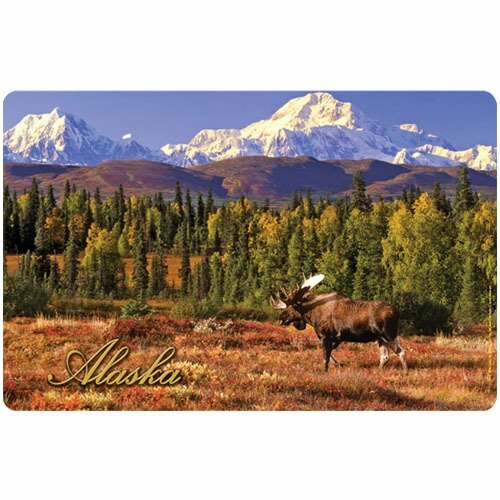 Laminated placemat featuring our photographic Denali and Moose design on the front and our Alaskan Blue Watercolor Map design on the back.